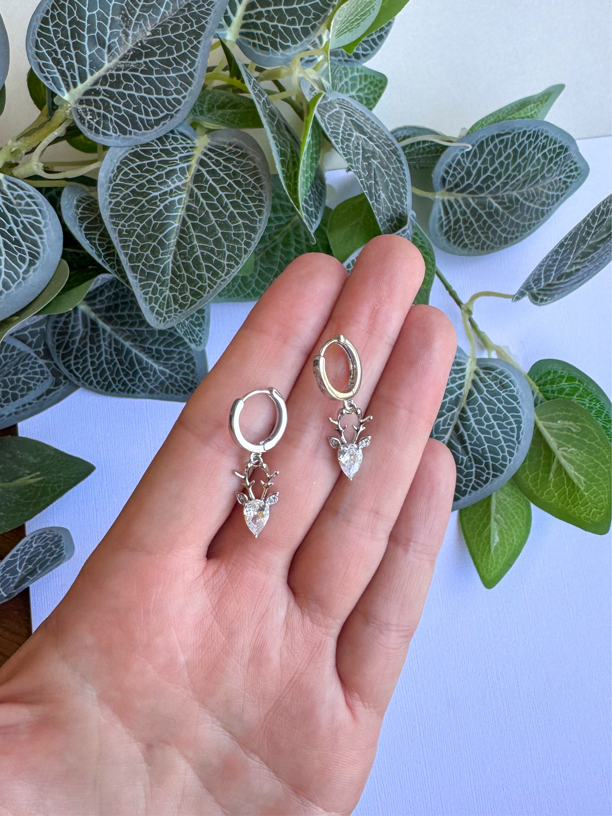 Silver CZ Reindeer Huggies